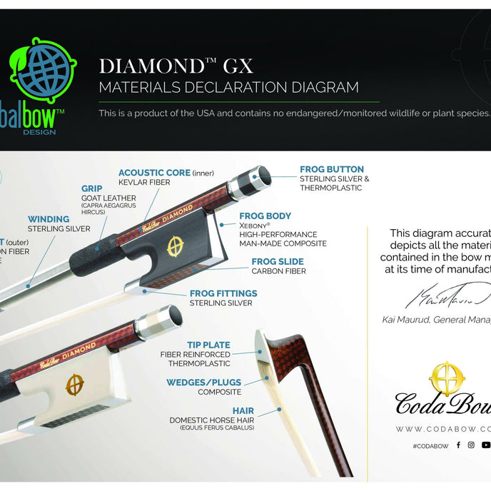 CodaBow Diamond GX Carbon Fiber Viola Bow 4/4