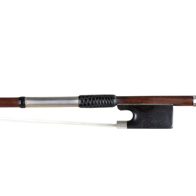 This bow was produced by students of Nicolas Rémy Maire's school of bow making. Maire (1800 – 1878) was one of the greats during the mid 19th century. He set up his own establishment in Mirecourt in 1826 but went bankrupt during the French economic crisis of the 1830s. Despite his financial woes he employed numerous workers, and produced a large number of high-quality bows during his career, many for Pajeot, Gand, and J.B. Vuillaume. Maire's bows often closely resemble his teacher's (Étienne Pajeot), although during his time in Paris he also produced some bows in the style of Dominique Peccatte. His brand reads, 'Maire' or 'N. Maire'.